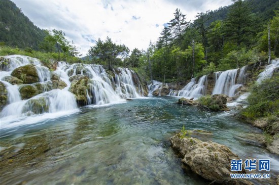 九寨溝風(fēng)景名勝區(qū)內(nèi)的“雙龍海瀑布”(6月18日攝)。新華社記者 沈伯韓 攝