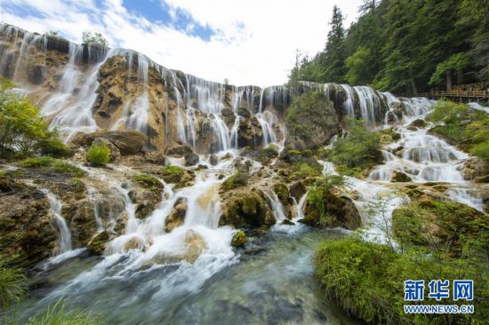 九寨溝風(fēng)景名勝區(qū)內(nèi)的“珍珠灘瀑布”(6月18日攝)。新華社記者 沈伯韓 攝