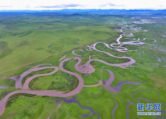 四川省阿壩藏族羌族自治州若爾蓋縣的熱曲河風(fēng)光(6月17日攝,無人機照片)。 新華社記者 劉坤 攝