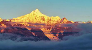 云霧中的梅里雪山上演日照金山