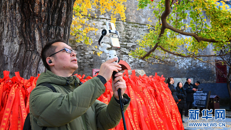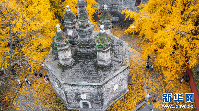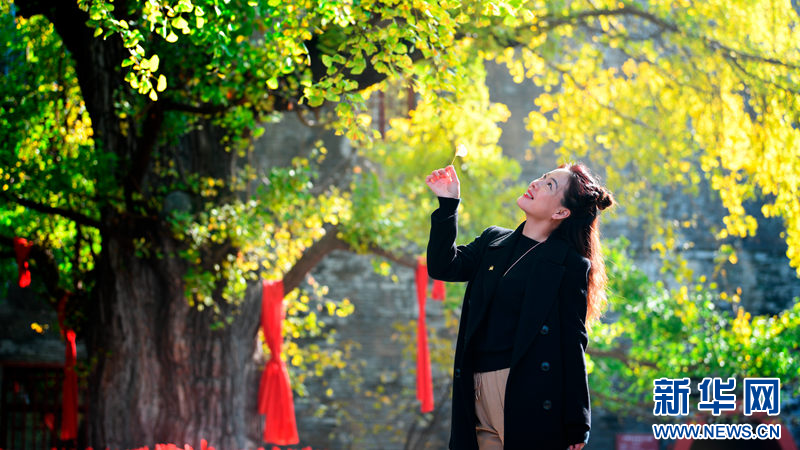 近日,佇立在湖北襄陽(yáng)廣德寺內(nèi)的銀杏古樹(shù)迎來(lái)最佳觀賞期,吸引了眾多游客前來(lái)拍照打卡。 楊瀟攝 新華網(wǎng)發(fā)?