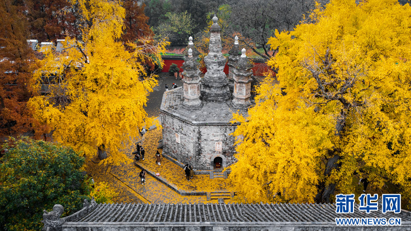 近日,湖北襄陽(yáng)廣德寺內(nèi)的銀杏古樹(shù)迎來(lái)最佳觀賞期,為寒冷冬日添上一絲暖意。