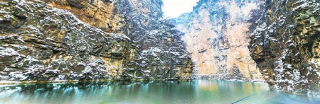 冬季的太行山大峽谷到處是冰瀑,比夏季更有看頭,是難得一見的美景。太行山大峽谷的山與水,在冰雪的映襯下,銀裝素裹、玲瓏剔透,像一幅素雅的國畫,儼然呈現(xiàn)出和北方其他山峰不一樣的冰雪景,深情款款地展示著它獨有的冰雪風情。