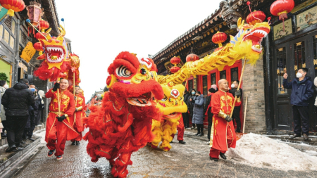 嗨冰雪,覓美食,逛冬景……在大同,除了人們熟知的“夏清涼”,還有“冬康養(yǎng)”。流光溢彩耀平城、魅力冰雪慶豐年等地方特色濃郁、群眾參與度高的文化活動,為人民傾情呈現(xiàn)趣味冰雪和熱鬧年俗、經(jīng)典美食與北國風情有機串聯(lián)的文旅盛宴。如果是春節(jié)期間來到古城,還會與具有獨特民俗風格的演藝活動不期而遇。鄉(xiāng)土氣息十足的街頭吆喝,民俗社火演藝,扭秧歌、劃旱船、背鐵棍、南北獅爭霸賽、山西民歌、八音會、晉劇表演等,讓人目不暇接。正月里的威風鑼鼓、秧歌、旱船等傳統(tǒng)民俗節(jié)目,讓游客大飽眼福。