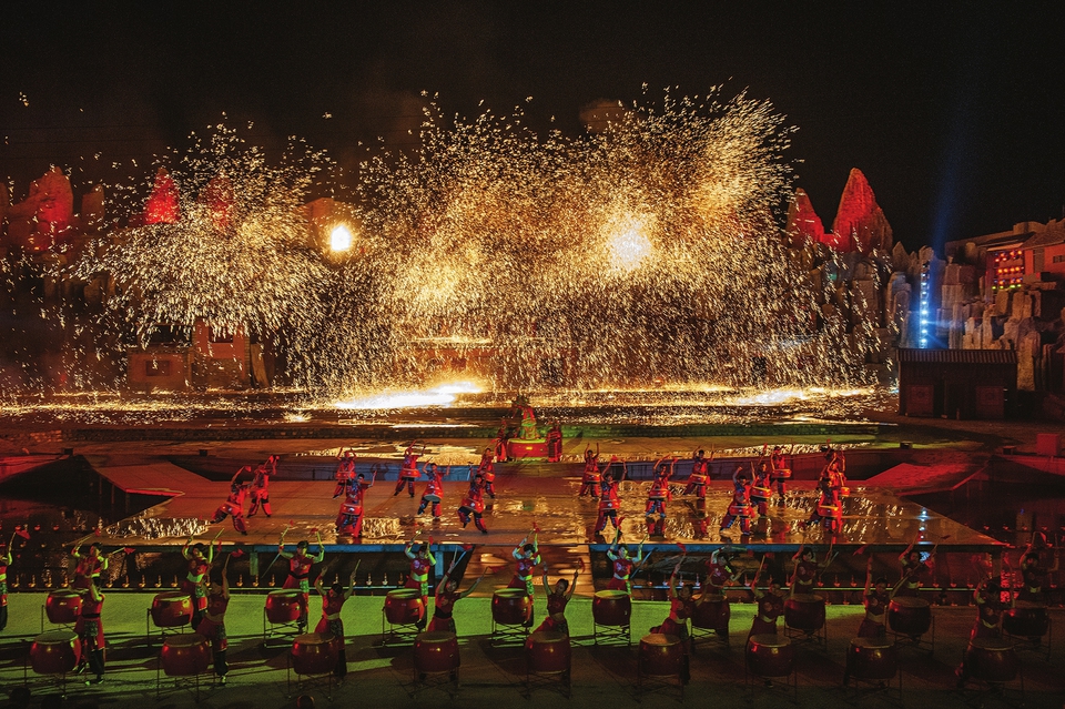 2月18日夜晚,晉城城區(qū)司徒小鎮(zhèn)的《千年鐵魂》演出現(xiàn)場(chǎng),近千人的劇場(chǎng)座無(wú)虛席,融合在璀璨燈光舞美、民俗演繹故事里的“打鐵花”表演恢宏壯闊,令八方來(lái)客看得如癡如醉。此時(shí)的華誼兄弟星劇場(chǎng)同樣人潮涌動(dòng)。大型沉浸式融合秀《重逢晉城》,通過(guò)大型特效舞臺(tái)互動(dòng)裝置、VR和AR虛擬現(xiàn)實(shí)等技術(shù)手段,融匯話劇、歌舞、武術(shù)、威亞等互動(dòng)演藝,實(shí)景再現(xiàn)晉城6大歷史文化場(chǎng)景,讓每位觀眾“穿越時(shí)空、一夢(mèng)千年”,直呼震撼、過(guò)癮。