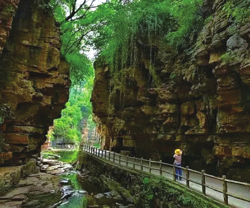 兵部寨有多處觀景臺可以俯瞰,下面是三郊口水庫,由于地勢險(xiǎn)要、道路不能通車,所以更加適合徒步旅行。在兵部寨下面,有一段廢棄的掛壁公路,只能步行通過,共有5個(gè)山洞相連,是拍照取景的絕佳地點(diǎn)。