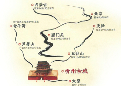 來到這里,你可以站在溝壑縱橫、梁峁起伏的黃土高原,欣賞懸崖峭立、水石相激的晉陜峽谷,也可以在古木參天、濃蔭蔽日的森林公園里散步,在百草茂盛、一望無垠的高山草甸上仰望星空。你可以游覽世界文化景觀遺產、佛教名山的五臺山,也可以領略秀容、岢嵐、寧化、代州4座悠遠古城的各有千秋,登攀三關營堡、歷朝歷代的邊塞長城。你可以在偏關老牛灣古渡、河曲西口古渡搖櫓渡河,回想晉商的輝煌,也可以身臨夜襲陽明堡飛機場遺址,重溫榮耀,感受歷史的震撼……