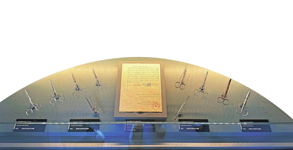 大同紅色記憶館內(nèi)有一個專屬展廳,珍藏著白求恩同志曾經(jīng)用過的12件醫(yī)療器械。這些醫(yī)療器械是白求恩從美國帶來,并曾在大同靈丘抗戰(zhàn)前線使用過的。館內(nèi)負責人任冬介紹,這些醫(yī)療器械是由大同市渾源縣王莊堡村退伍老兵宮福祥老人于1984年捐贈給雁北文物工作站的。如今,它們已經(jīng)成為該館的“鎮(zhèn)館之寶”,見證了白求恩大夫在抗戰(zhàn)前線的無私奉獻和國際主義精神。