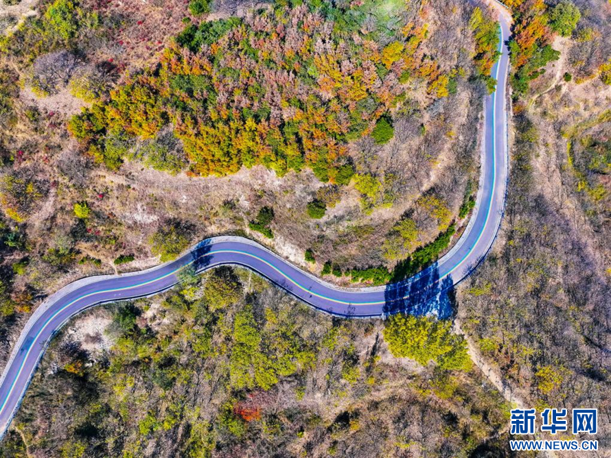 盤山公路仿佛一條飄帶纏繞在山間(無人機照片)。新華網(wǎng)發(fā)(薄林 攝)
