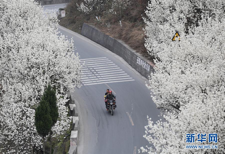 3月2日,薛家灣村公路兩旁櫻桃花盛開。近日,陜西旬陽縣段家河鎮(zhèn)薛家灣村連片的櫻桃花競相綻放,形成一道靚麗的風(fēng)景線。據(jù)了解,當(dāng)?shù)卣鶕?jù)實際情況,大力發(fā)展薛家灣村櫻桃種植業(yè),打造生態(tài)旅游村。目前該村櫻桃年產(chǎn)值980余萬元,果農(nóng)人均年增收5000余元。新華社發(fā)(邵瑞 攝)