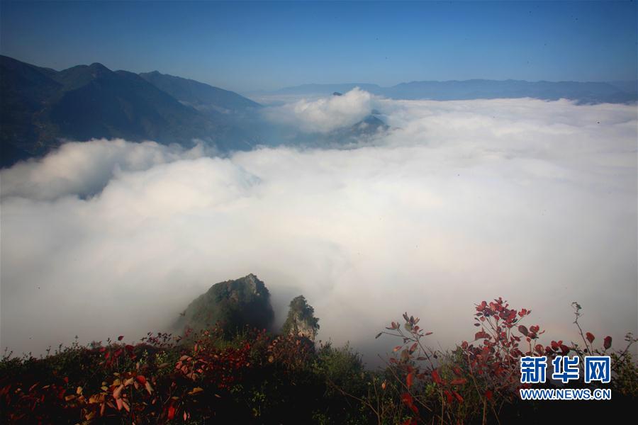 2016年11月11日 巫峽云海 這是11月11日在巴東大面山拍攝的巫峽云海景觀。當日,地處湖北恩施的長江三峽巫峽口云霧繚繞,與漫山遍野的紅葉相映成趣。 新華社發(fā)(文振效 攝)