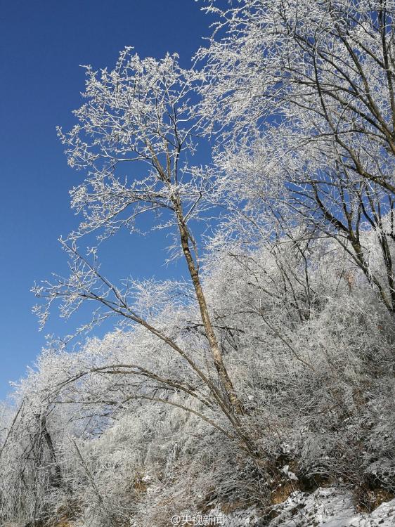 受較強(qiáng)冷空氣影響,秦嶺腹地涼風(fēng)埡山頂,出現(xiàn)大面積霧凇景觀。玉樹瓊枝,晶瑩剔透,讓涼風(fēng)埡山頂變得像童話世界一般,美不勝收。 央視記者王志杰 圖片來(lái)源:央視新聞微博