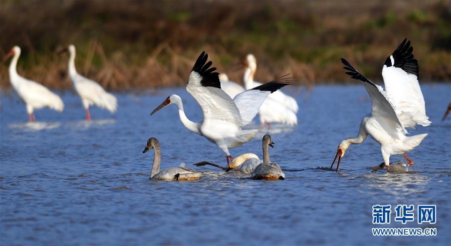 受新一輪北方冷空氣南下影響,江西鄱陽湖越冬候鳥數(shù)量激增,一年中最佳的觀鳥時(shí)節(jié)到來。江西鄱陽湖國家級(jí)自然保護(hù)區(qū)管理局近日監(jiān)測顯示,飛抵保護(hù)區(qū)的候鳥總數(shù)達(dá)到16萬只,主要包括大雁、小天鵝、白鶴、東方白鸛等。