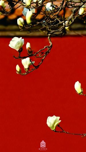 其實(shí),早在放送杏花美照之前,已經(jīng)有玉蘭出鏡了。仲春,紫禁城里難覓迎春花的蹤影,所以玉蘭擔(dān)起了“迎春”的職責(zé)。同樣是紅墻琉璃瓦的旁邊,玉蘭花迎著輕柔的陽光,沐浴在春日的暖風(fēng)里。