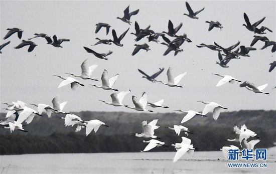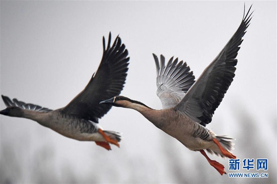 11月29日,候鳥(niǎo)在江西鄱陽(yáng)湖南磯濕地國(guó)家級(jí)自然保護(hù)區(qū)飛翔。近日,大批南遷候鳥(niǎo)飛抵鄱陽(yáng)湖棲息越冬。