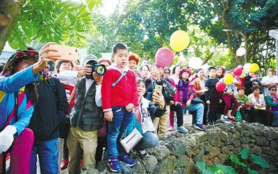 近日,在海口龍華區(qū)新坡鎮(zhèn)斌騰村,游客排隊觀看特色表演,現(xiàn)場井然有序。