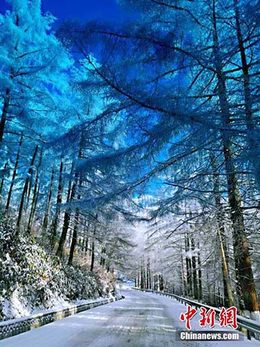 湖北現(xiàn)“林海雪原” 銀裝素裹風(fēng)景如畫