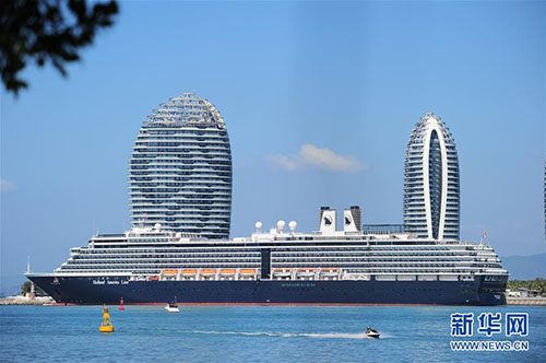 1月31日,“威斯特丹號”停靠在三亞鳳凰島國際郵輪港。