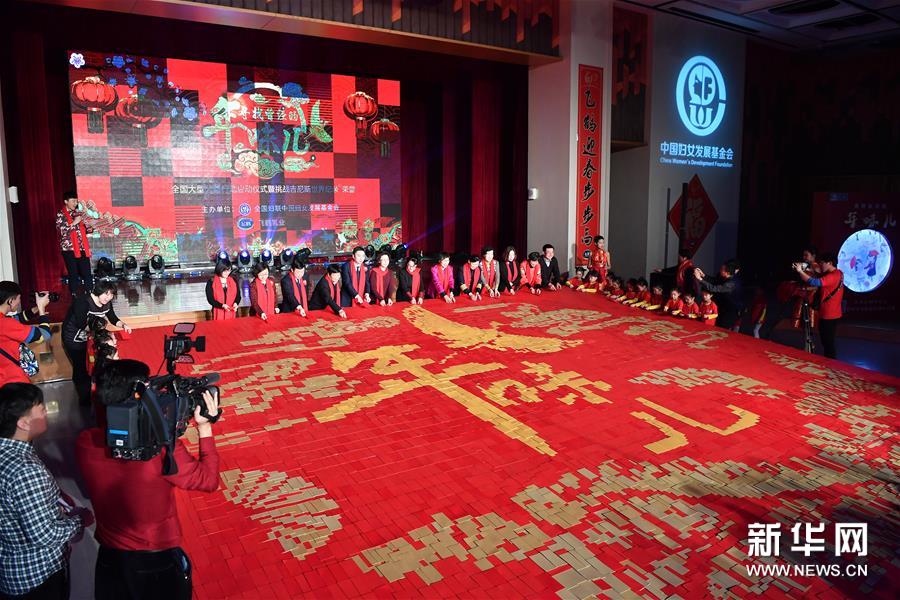1月11日,“尋找曾經的年味兒”全國大型公益行動在北京中國婦女兒童博物館啟動,通過發(fā)放年味兒畫冊、舉辦年味兒趣味活動,弘揚傳統(tǒng)文化,同時為貧困家庭、醫(yī)護工作者送去問候與關愛?;顒又?,由近6萬個紅包拼鋪而成的64平方米“最大紅包拼圖”載入吉尼斯世界紀錄。春節(jié)期間,北京、濟南、石家莊、鄭州、哈爾濱等五座城市都將開展尋找年味兒的相關活動。新華社記者 李鑫 攝
