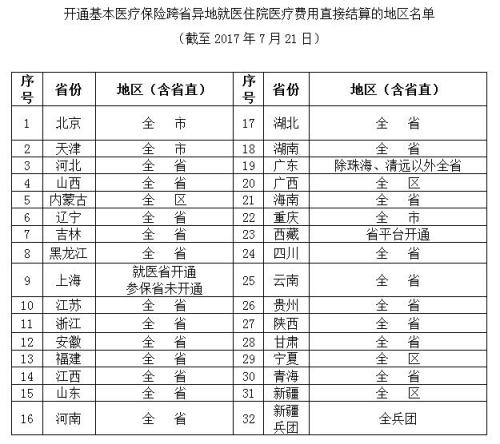 據(jù)人力資源和社會保障部網(wǎng)站消息,目前全國跨省異地就醫(yī)住院醫(yī)療費(fèi)用直接結(jié)算聯(lián)網(wǎng)接入工作順利推進(jìn)。截至7月21日,全國31省份和新疆生產(chǎn)建設(shè)兵團(tuán)均接入國家異地就醫(yī)結(jié)算系統(tǒng),開通390個地區(qū),占97.5%。截至7月19日,開通4055家跨省異地就醫(yī)住院醫(yī)療費(fèi)用直接結(jié)算定點(diǎn)醫(yī)療機(jī)構(gòu)。