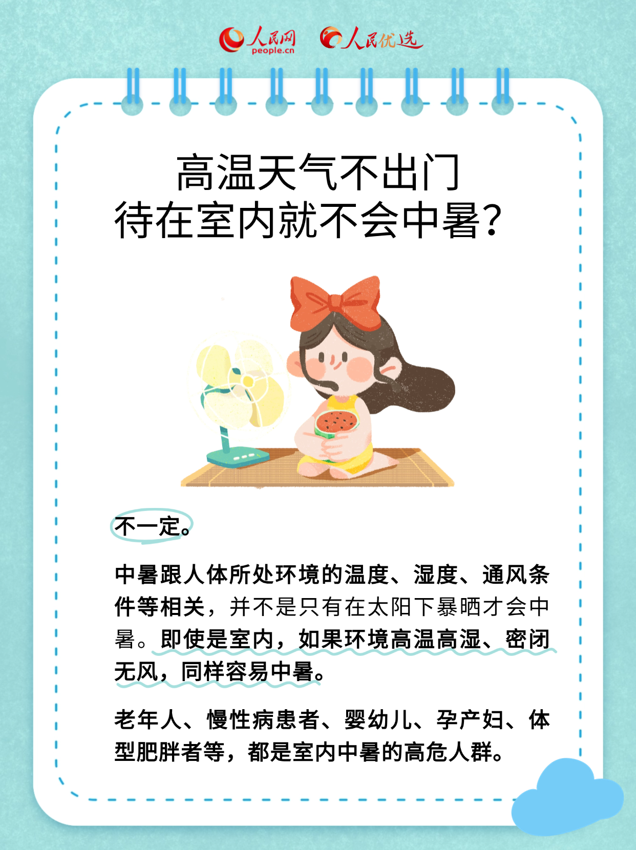 夏季天氣炎熱,如何避免中暑成為大家關(guān)注的熱點話題。每天哪個時間段最容易中暑?高溫天氣不出門,待在室內(nèi)就不會中暑嗎?不同場景下又該如何防暑?