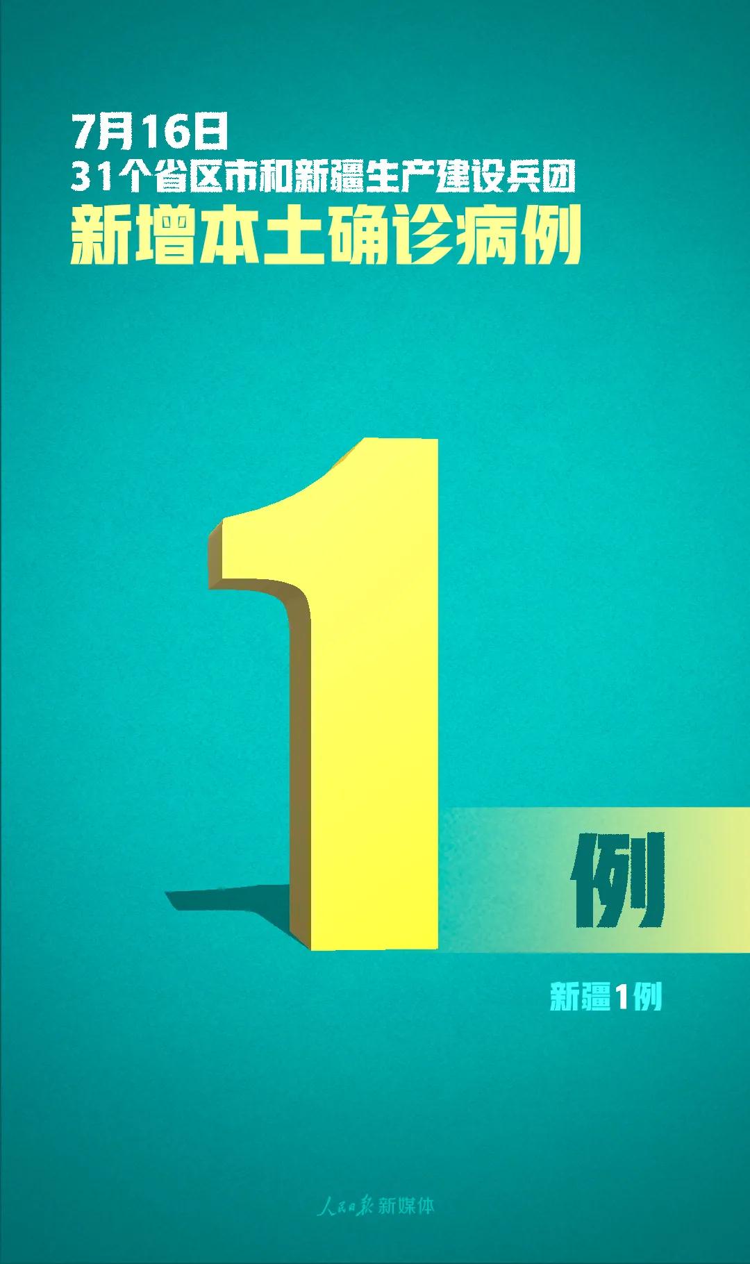 7月16日0—24時(shí),31個(gè)?。ㄗ灾螀^(qū)、直轄市)和新疆生產(chǎn)建設(shè)兵團(tuán)報(bào)告新增確診病例10例,其中境外輸入病例9例(廣東4例,上海1例,江蘇1例,山東1例,廣西1例,陜西1例),本土病例1例(在新疆);無新增死亡病例;新增疑似病例1例,為境外輸入病例(在上海)。