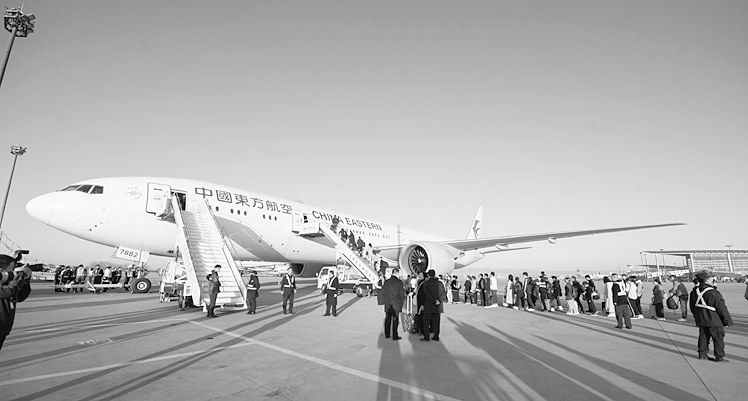 圖為旅客正在登機(jī)。 本報(bào)通訊員 攝