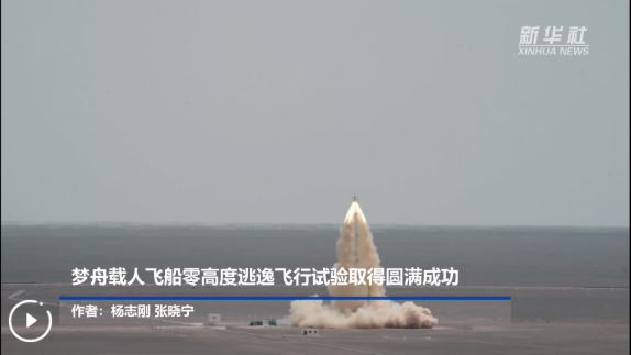 17日中午,記者在酒泉衛(wèi)星發(fā)射中心看到,夢舟載人飛船逃逸發(fā)動機點火后,船塔組合體瞬間騰空而起,到達(dá)預(yù)定高度后返回艙與逃逸塔安全分離,隨后返回艙安全著陸于預(yù)定區(qū)域,試驗取得圓滿成功。