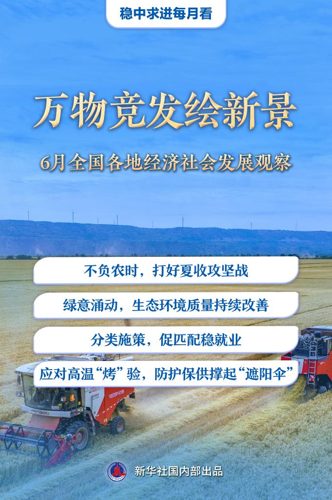 新華社北京6月29日電題:萬(wàn)物競(jìng)發(fā)繪新景——6月全國(guó)各地經(jīng)濟(jì)社會(huì)發(fā)展觀察