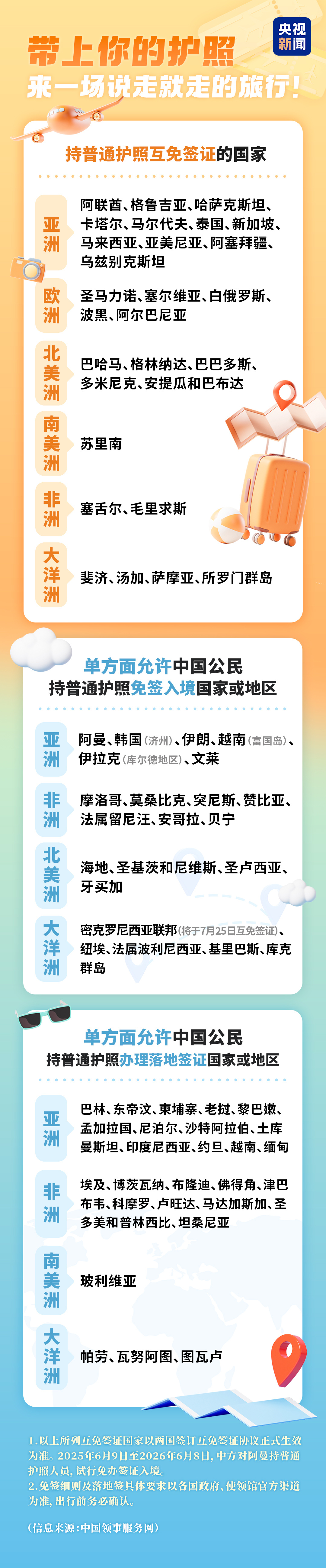 帶上護(hù)照,還有哪些國家可以“說走就走”?一圖了解↓