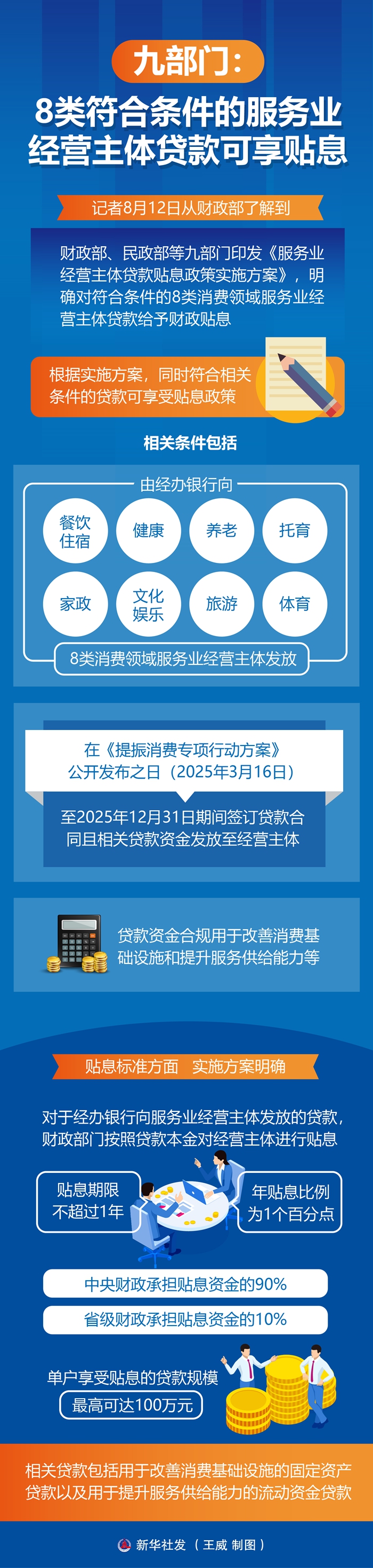 新華社北京8月12日電(記者申鋮)記者12日從財(cái)政部了解到,財(cái)政部、民政部等九部門印發(fā)《服務(wù)業(yè)經(jīng)營主體貸款貼息政策實(shí)施方案》,明確對符合條件的8類消費(fèi)領(lǐng)域服務(wù)業(yè)經(jīng)營主體貸款給予財(cái)政貼息。