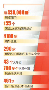 展覽面積超過43萬平方米,155個國家、地區(qū)和國際組織參與,4108家境外企業(yè)參展,290家世界500強和行業(yè)龍頭企業(yè)參展……在八方來客眼中,進博會越長越“高”、越來越“壯”。