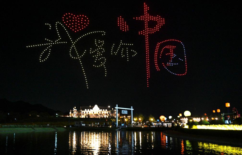 10月4日晚,在浙江省金華市武義縣花田美地景區(qū),精彩的無人機表演為游客呈現了一場視覺盛宴。新華社發(fā)(張建成攝)