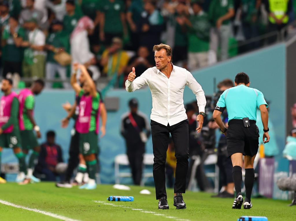 沙特隊(duì)主教練勒納爾在場邊指揮。 新華社記者 丁旭 攝