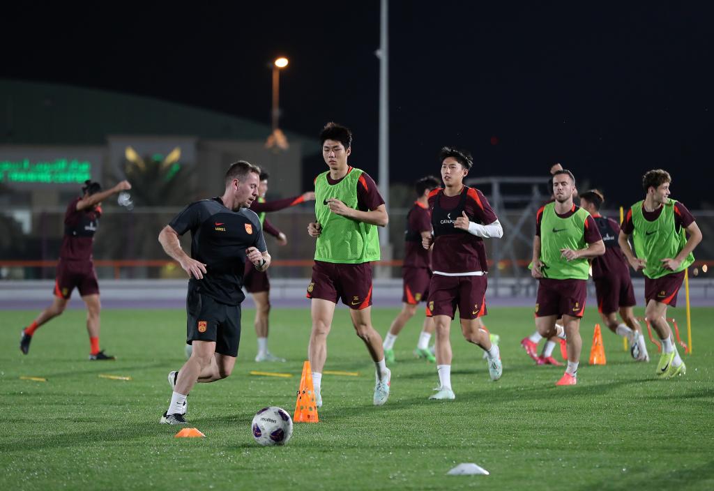 3月18日,中國國家男子足球隊(duì)在沙特阿拉伯首都利雅得進(jìn)行賽前訓(xùn)練。新華社記者 王東震 攝