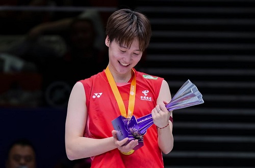 女單決賽上演“中國德比”。陳雨菲以11:21、21:14、21:9逆轉(zhuǎn)戰(zhàn)勝韓悅奪冠,中國隊包攬金、銀牌。從年初回歸到亞錦賽奪冠,陳雨菲認為自己的復出之路比較順利,但還有很多提升空間,面對接下來的蘇迪曼杯,更要“沉下心來好好去加強自己 ”。