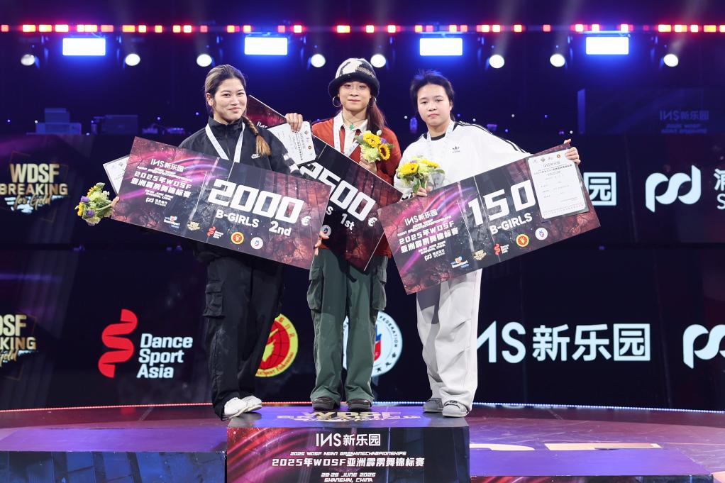 新華社上海6月29日電(記者許東遠(yuǎn)、肖亞卓)2025年亞洲霹靂舞錦標(biāo)賽29日在上海盧灣體育館結(jié)束。中國選手郭樸在女子組表現(xiàn)出色,繼前一日奪得亞洲青年錦標(biāo)賽冠軍后,再度在成年組比賽中折桂,實現(xiàn)連冠。男子組方面,日本名將、杭州亞運會冠軍半井重幸則憑借穩(wěn)定發(fā)揮摘得金牌。