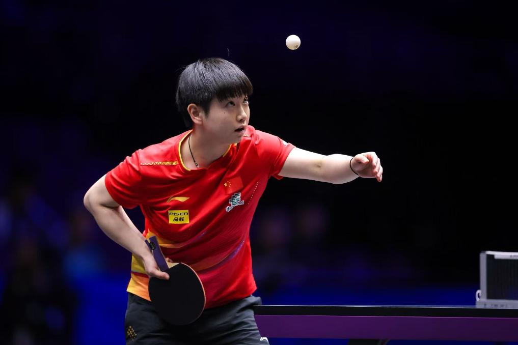 王曼昱當天率先登場,迎戰(zhàn)中國澳門隊的朱雨玲。首局比賽,王曼昱開局3:0領先,之后朱雨玲反超并拉開比分,以11:8先聲奪人。第二局,王曼昱又在4:0領先的情況下被對手以11:6逆轉。絕境中的王曼昱在第三局頂住壓力,以11:8扳回一局。但手感火熱的朱雨玲在第四局抓住機會,以11:5鎖定勝局。