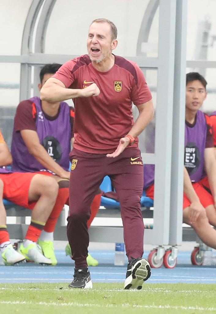 7月15日,中國隊代理主教練久爾杰維奇在場邊指揮。新華社記者 姚琪琳 攝