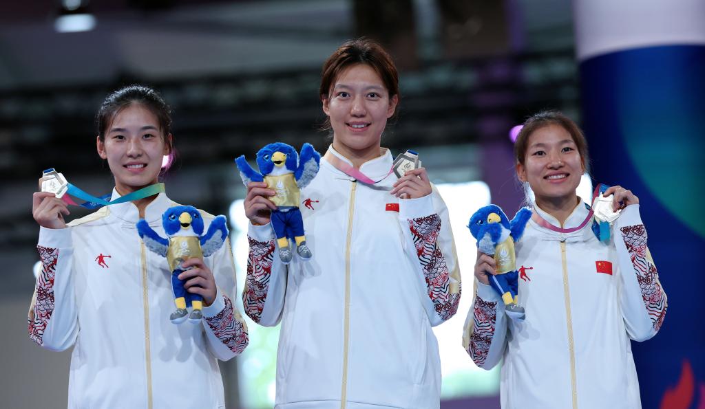 收官日當(dāng)天,女子1米板、男子雙人3米板、混合雙人10米臺(tái)、男子團(tuán)體、女子團(tuán)體的5枚金牌被中國隊(duì)包攬。歐陽鈺和王壹包攬女子1米板金銀牌;張文澳/胡宇康奪得男子雙人3米板金牌;鄭鈞之/王偉瑩在混雙10米臺(tái)決賽中以絕對(duì)優(yōu)勢奪冠。