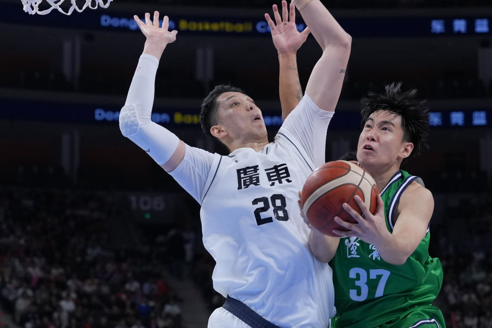 11月11日,廣東隊球員沈梓捷(左)在比賽中防守遼寧隊球員李虎翼。新華社記者 李博 攝