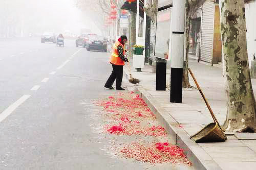 45歲的環(huán)衛(wèi)工張秀生告訴筆者,“越是節(jié)假日,越不能停歇,把路面收拾得干干凈凈,老百姓走著舒坦,我心里也高興?!边@幾天風(fēng)大天冷,張師傅卻干得特別有勁。不到2個(gè)小時(shí),城區(qū)健康中街周邊的垃圾全部清理干凈?!白蠲Φ臅r(shí)候就是下午四五點(diǎn)鐘,路上的垃圾數(shù)量明顯增加?!睆垘煾嫡f,有時(shí)他一直忙到晚上6點(diǎn)才回家,第二天早上,不到4點(diǎn)他就從床上爬起來了。據(jù)悉,春節(jié)期間,城區(qū)的環(huán)衛(wèi)工人基本全部在崗,許多環(huán)衛(wèi)工人甚至提前到崗清掃街道,確保市容整潔。張師傅希望市民們春節(jié)燃放鞭炮時(shí)不僅要注意安全,還要保護(hù)環(huán)境衛(wèi)生。