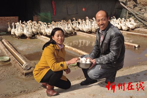 飼養(yǎng)蛋鵝農民收獲鵝蛋時的激動