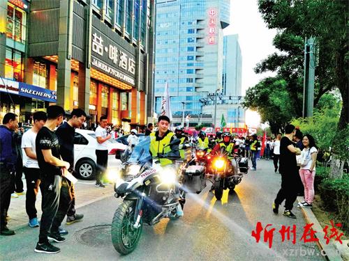 本次“熒光跑”活動(dòng)由開(kāi)來(lái)欣悅購(gòu)物廣場(chǎng)主辦,忻州藍(lán)天救援隊(duì)、秀容騎士摩托騎行隊(duì)和愛(ài)心公益大聯(lián)盟等眾多志愿者隊(duì)伍為該活動(dòng)全程提供安全保障,大家用“熒光跑”這種獨(dú)特的方式表達(dá)著對(duì)家鄉(xiāng)忻州的熱愛(ài)。圖為摩托騎行隊(duì)為“熒光跑”開(kāi)道(魯明強(qiáng) 米成?。?/p>