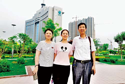 劉增芬、 呂勇、 呂卓蔚一家人在國(guó)家電網(wǎng)忻州供電公司辦公大樓外
