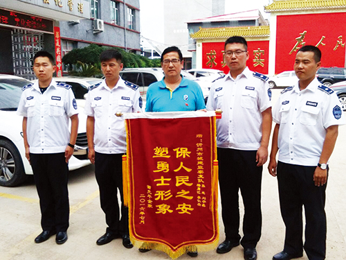 “謝謝你們的幫助,讓我被搶的財物失而復(fù)得,謝謝、謝謝……”7月13日下午,家住我市城區(qū)學(xué)府街的謝先生連聲感謝,將一面寫有“保人民之安塑勇士形象”字樣的錦旗送到了市城建支隊(duì)協(xié)管大隊(duì)城管隊(duì)員張志、楊勇江、劉宇鑫、李仁杰手中,表達(dá)他對市城建支隊(duì)城管隊(duì)員們見義勇為、熱心為民的感激之情。
