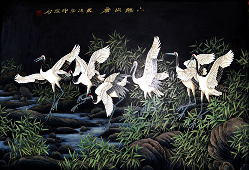 《六鶴同春》推光漆畫(huà)