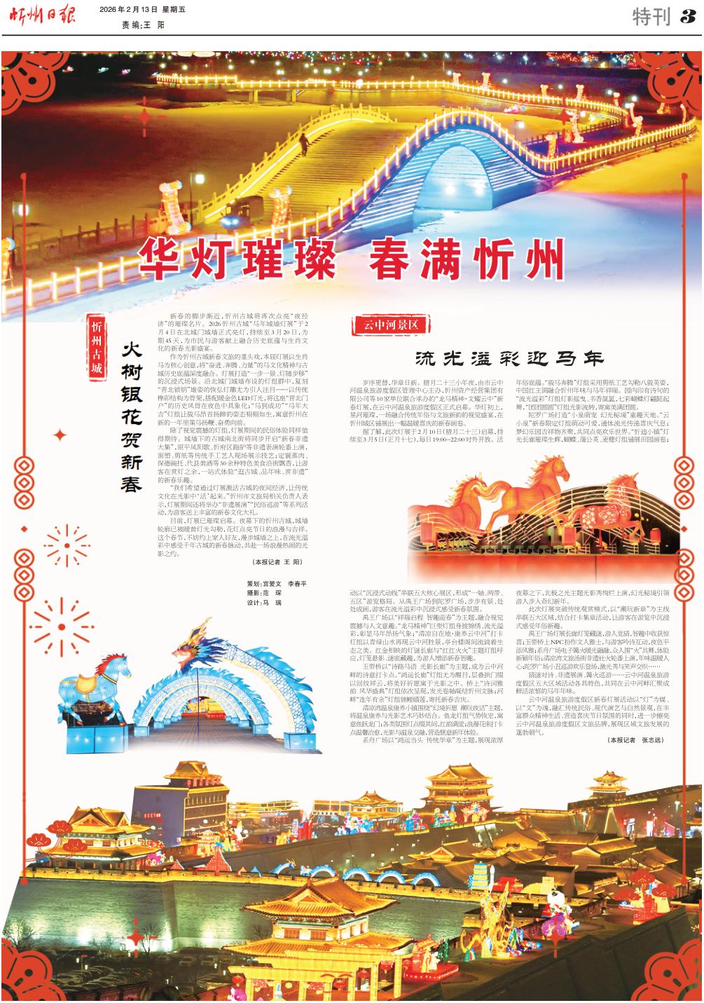 “我們希望通過(guò)燈展激活古城的夜間經(jīng)濟(jì),讓傳統(tǒng)文化在光影中‘活’起來(lái)。”忻州市文旅局相關(guān)負(fù)責(zé)人表示,燈展期間還將舉辦“非遺展演”“民俗巡游”等系列活動(dòng),為游客送上豐富的新春文化大禮。