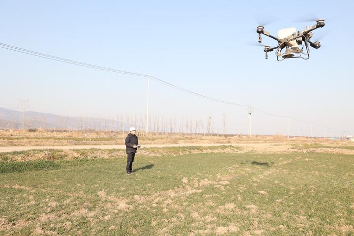 在位于江蘇連云港的云臺農(nóng)場,高效節(jié)能、操作便捷的植保無人機(jī)騰空而起,成為1.8萬畝小麥春季管護(hù)的得力助手。通過無人機(jī)作業(yè)每1000畝地僅需一名工作人員,兩天便可完成農(nóng)場全部小麥地的施肥。