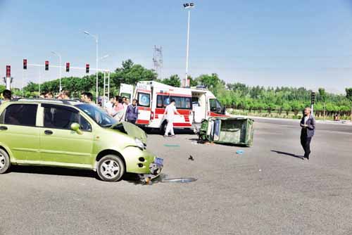 5月23日,在忻州市區(qū)梨花街與建設(shè)路口發(fā)生一起汽車與電動(dòng)三輪車相撞事故。在此提醒廣大司機(jī)朋友及行人,遵守交通規(guī)則,注意行車安全,謹(jǐn)慎駕駛,必免事故發(fā)生。(張存良 攝)